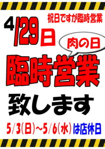 4月29日(水・祝) 昭和の日は休まず【臨時営業】いたします!